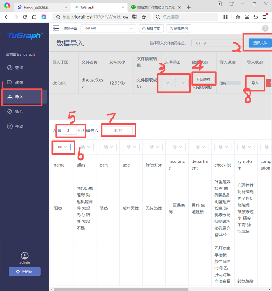 运行write_conf.py得到example.json,将其导入TuGraph。