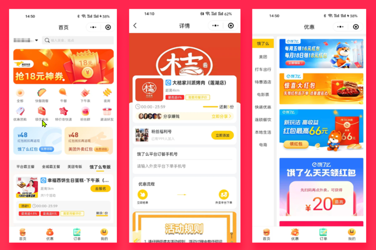 JAVA外卖霸王餐CPS优惠CPS平台自主发布小程序+公众号霸王餐源码