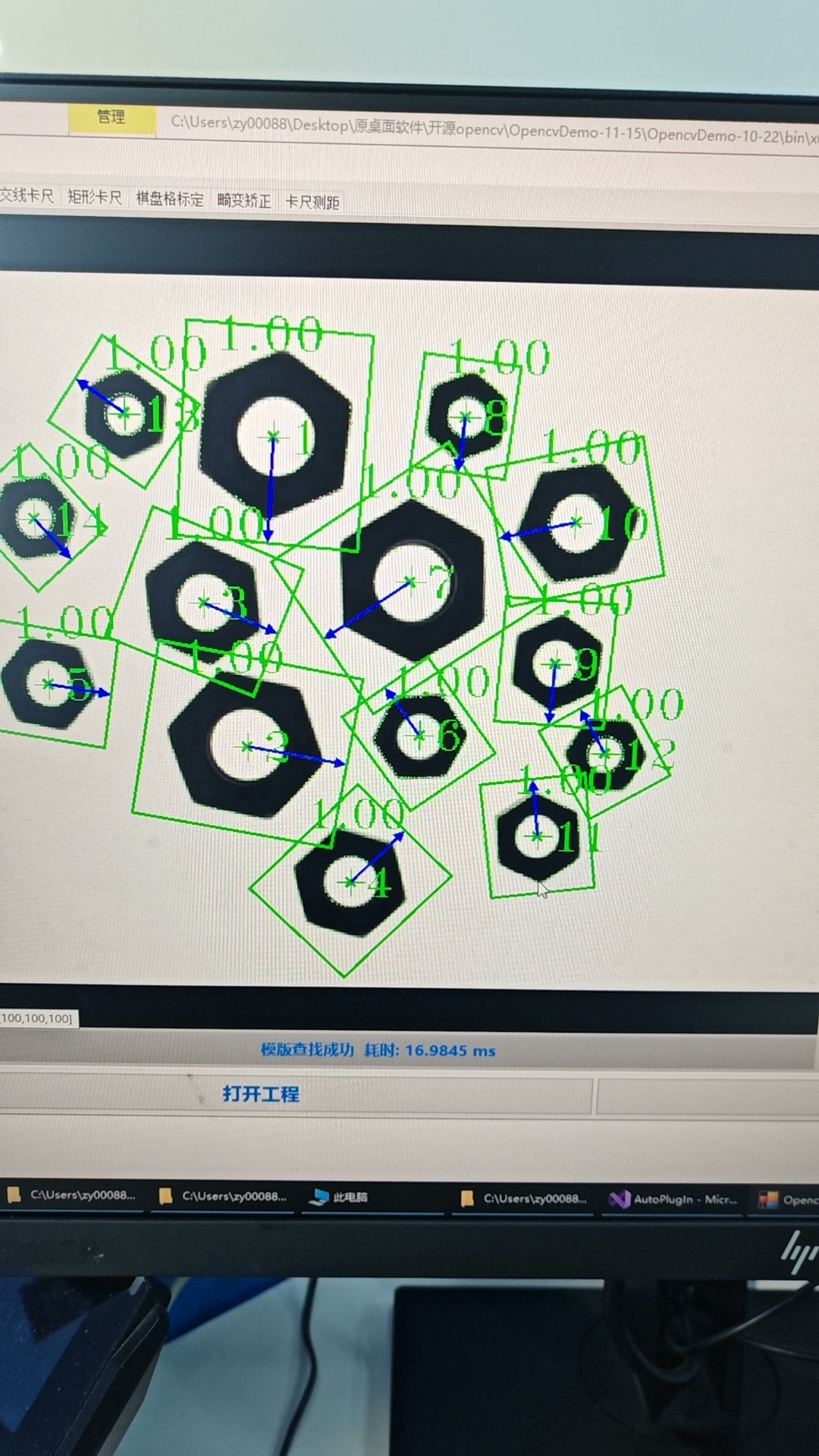 基于Opencv C# 开发的圆卡尺、矩形卡尺,直线卡尺、距离测量工具源码,(送其他全部再卖项目)代码运行正常,由实际运行项目中剥离,含测试图片,包含一个强大的视觉控件源码,控件仿halcon,支持平移,无损缩放,显示各种自定义图形工具,鼠标拖动,简单方便。