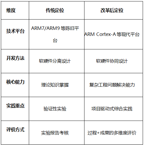 基于上述背景,本文深入探索人工智能驱动下嵌入式系统课程教学改革的创新路径与实践策略,旨在通过系统性改革举措,有效弥合传统课程教学与产业应用需求之间的差距。具体通过明确课程定位、构建分层递进式课程内容体系、重构教学内容模块、深化产教融合实践创新,以及实施 “课程 - 创新 - 竞赛” 一体化培养模式,为培养契合产业发展需求的嵌入式系统专业人才提供可资借鉴的解决方案。