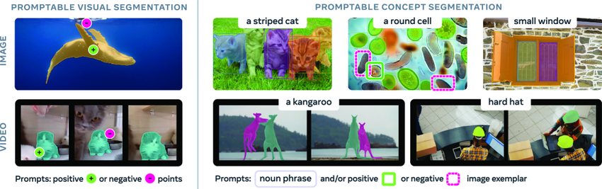 在视觉场景中识别并分割任意物体的能力,是多模态人工智能的重要基础,可广泛应用于机器人、内容创作、增强现实、数据标注等领域。SAM(Segment Anything Model)是 Meta 于 2023 年 4 月发布的人工智能通用模型,提出了针对图像和视频的可提示分割任务,主要支持基于点、框或掩码的提示来分割单个目标。