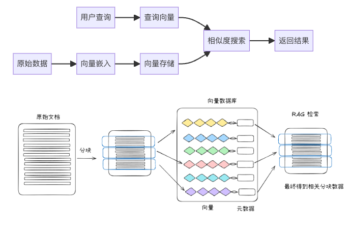 统一查询(Query)与文档块(Chunk)的向量空间、支撑高效的语义相似度计算(如余弦相似度)。