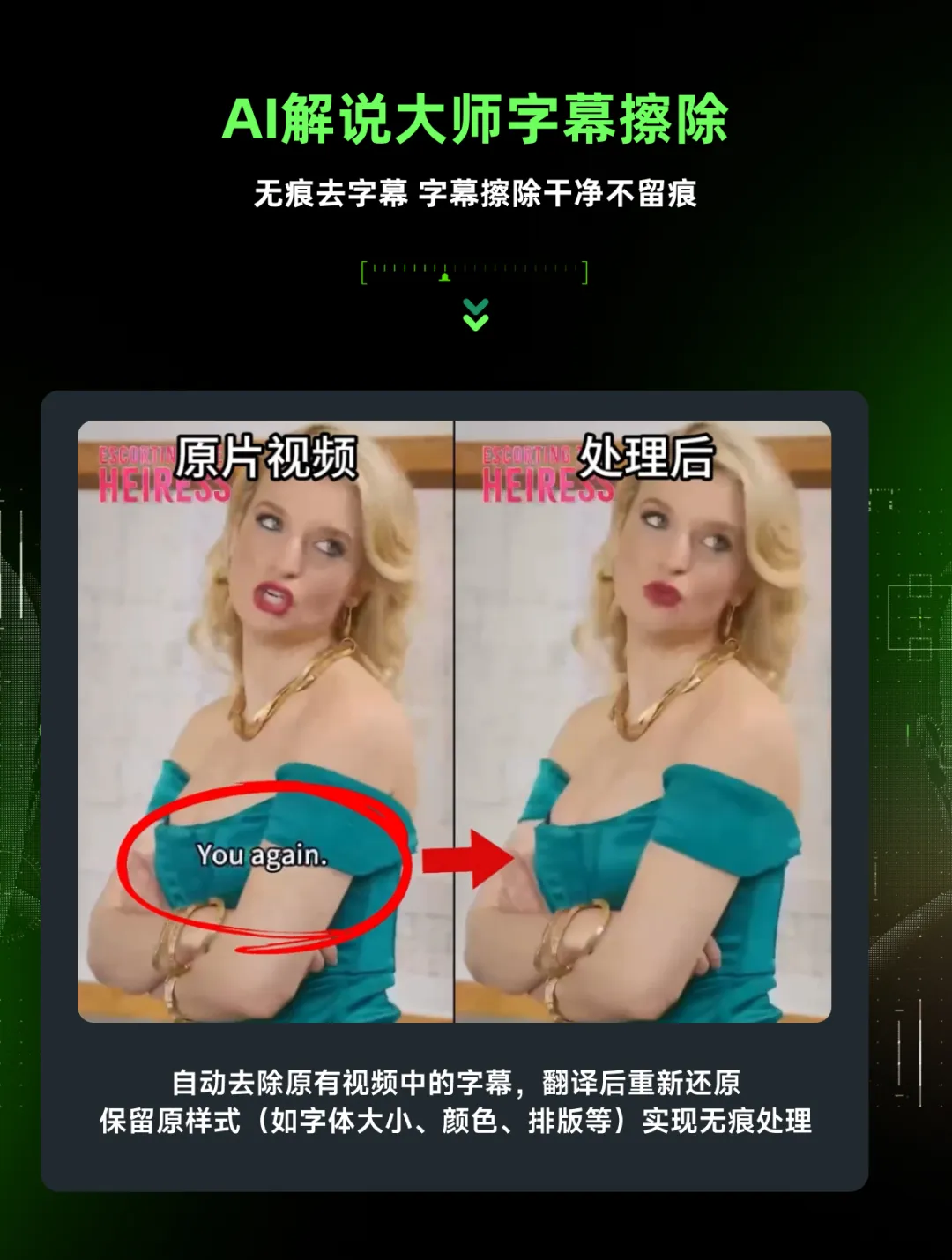 它并不是一个单点工具,而是:“从字幕 → 翻译 → 擦除 → 压制 → 输出” 全链路的视频本地化解决方案。