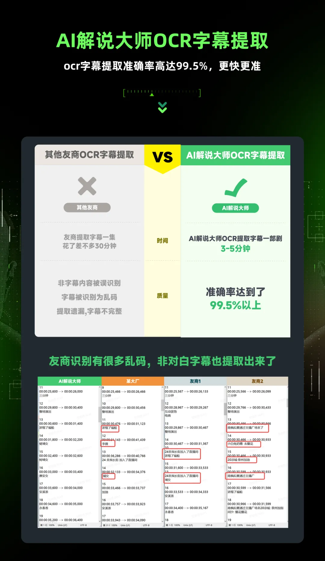 能力:高精度 OCR、多字体、98%+ 定位准确率、自动时间轴