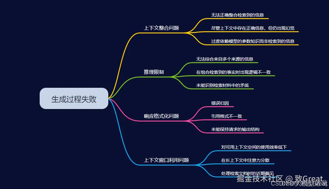 - 生成失败 —— 检索的内容没被合理利用,AI 仍然生成了错误或无关的回答。