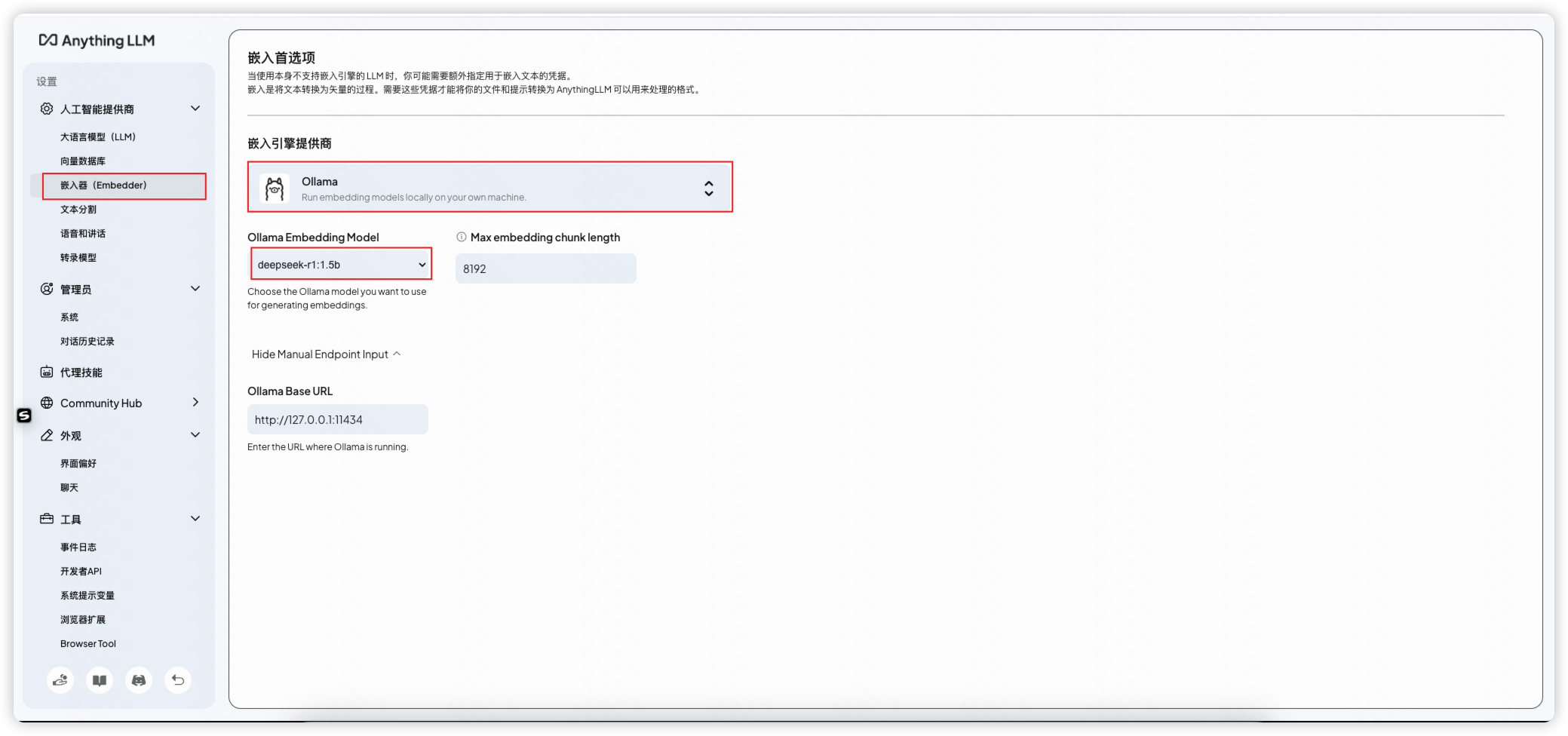 在设置中配置嵌入器