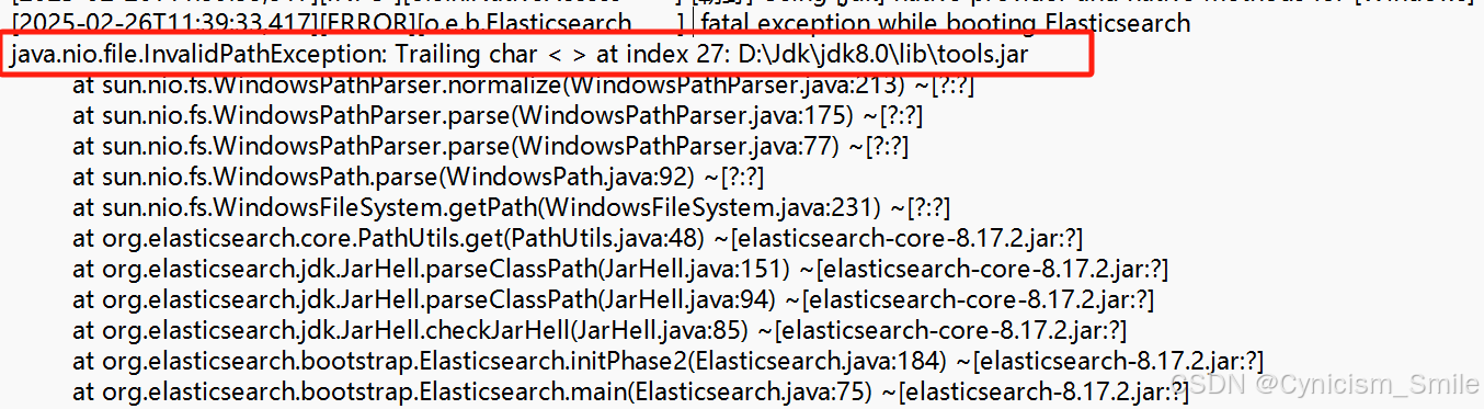 es启动报 java.nio.file.InvalidPathException: Trailing char < > at index 27: D:\Jdk\jdk8.0\lib\tools.jar