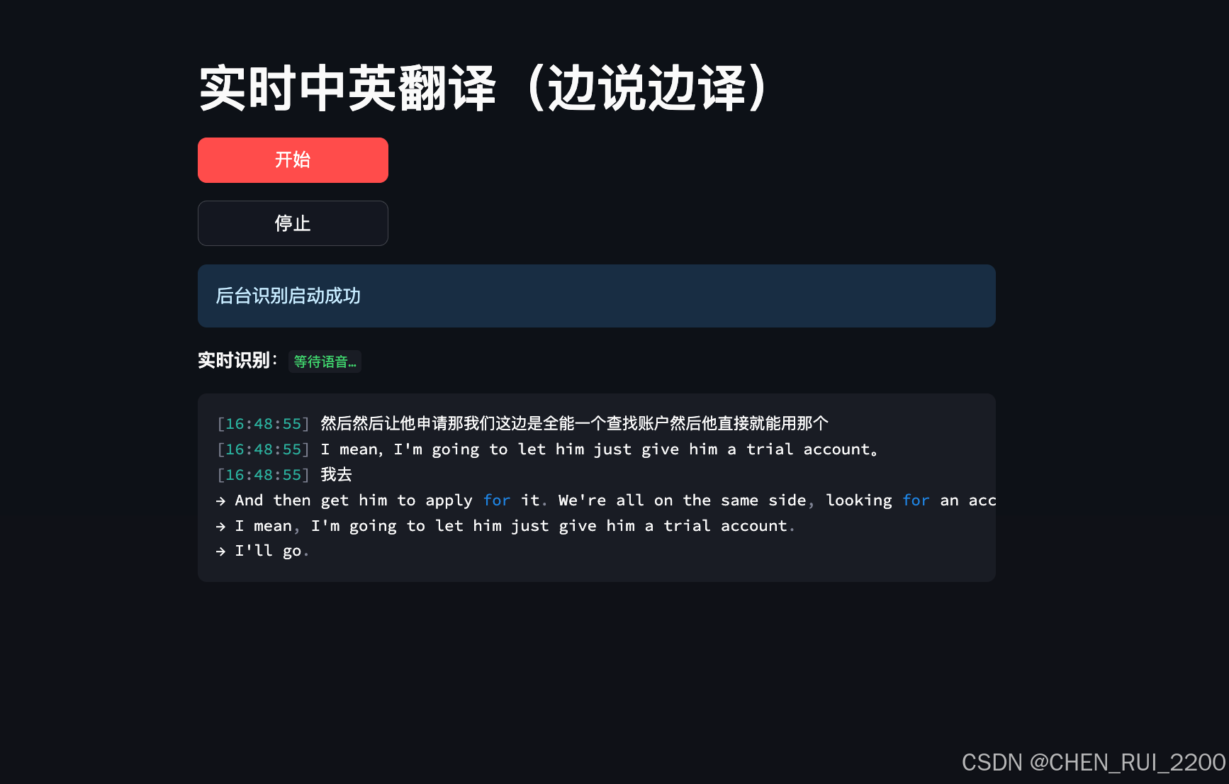 - 实时显示当前识别文本