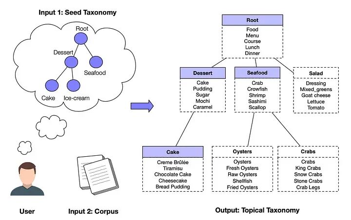 HiExpan 通过扩展实体来发展分类法,然后使用词语类比进行细化。它旨在从领域聚焦的文本语料库中创建特定任务的分类法。用户可以提供一个种子分类法来指导过程,确保结果与其需求相关。
