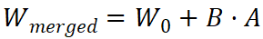 这是 LoRA 最聪明的地方。虽然训练时是旁路结构,但在推理(部署)时,我们可以利用矩阵分配律,直接将训练好的 B · A 加回到 W₀ 中:
