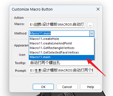 设置宏按钮的时候这里要选择main,不然程序不会从main函数开始运行