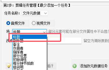 3.在任务列表中,点击选择“文件元数据”任务选项,对导入的视频文件的元数据进行编辑。