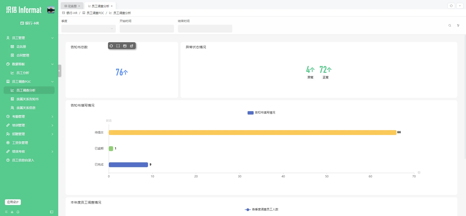 人员信息管理:维护员工基本信息、学历、职称、合同等数据,支持快速查询与统计。