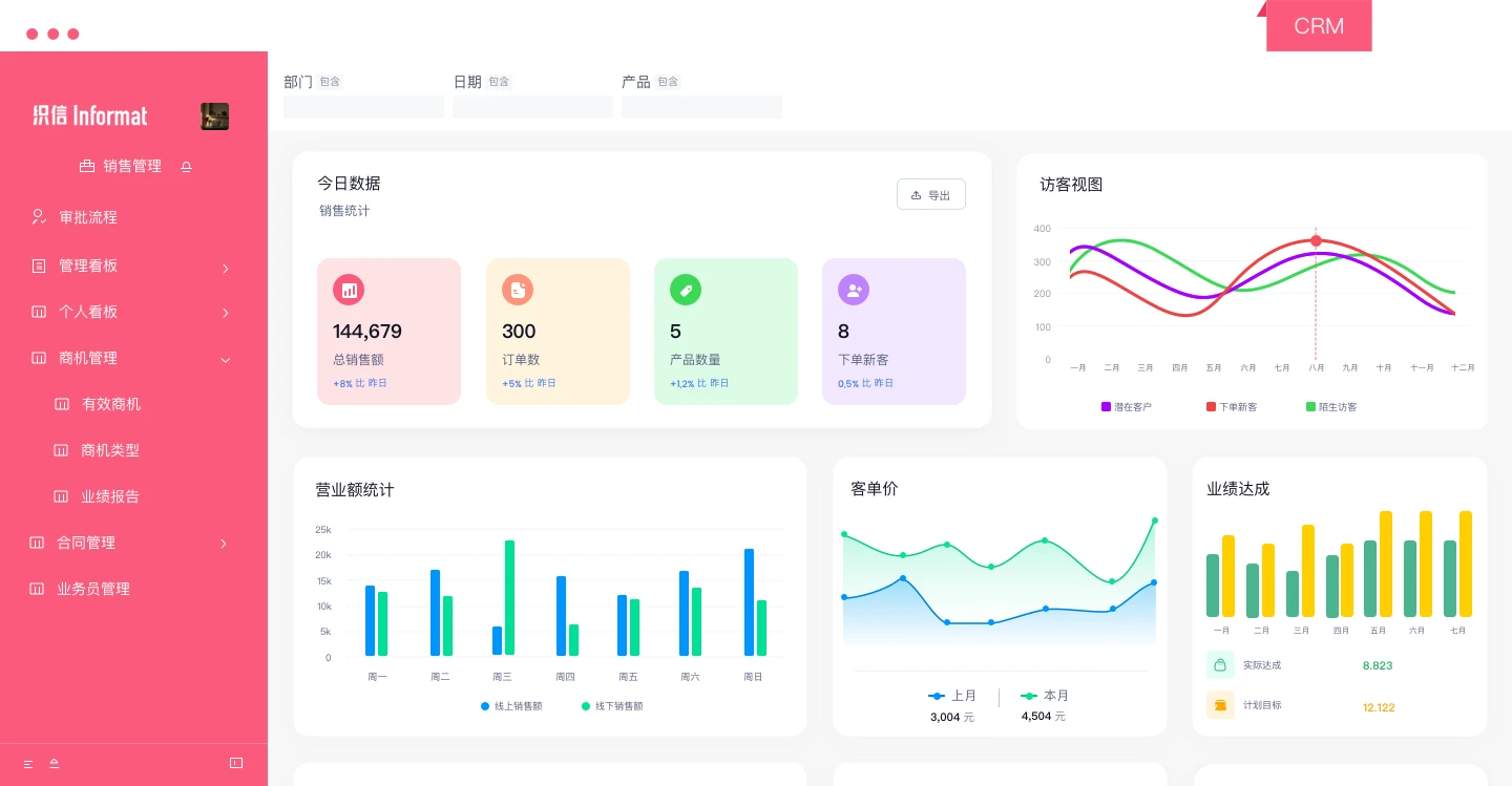 销售管理:跟踪潜在客户和销售机会,管理销售漏斗。