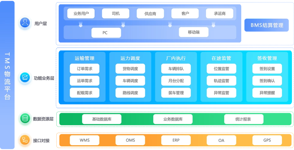 TMS 系统专注于优化企业运输环节的规划、执行与跟踪,降低运输成本,提高货物交付的及时性与准确性。