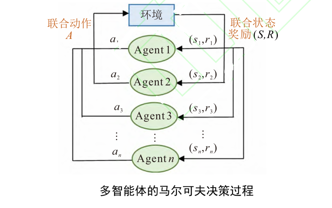 MADRL(多智能体强化学习)的基础是马尔可夫博弈(又称随机博弈)。在这个框架里,所有智能体根据当前环境状态同时选动作,这些动作形成的联合行为,既会改变环境状态,也会影响每个智能体拿到的奖励。正因为能让多个智能体互动完成复杂任务,MADRL 很适合解决自动驾驶里的多车协同决策问题。