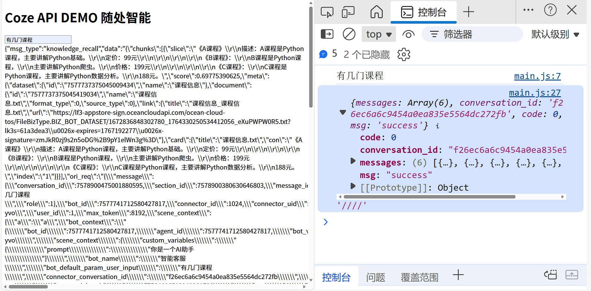 四、逐行详解 main.js:如何与 Coze 对话?