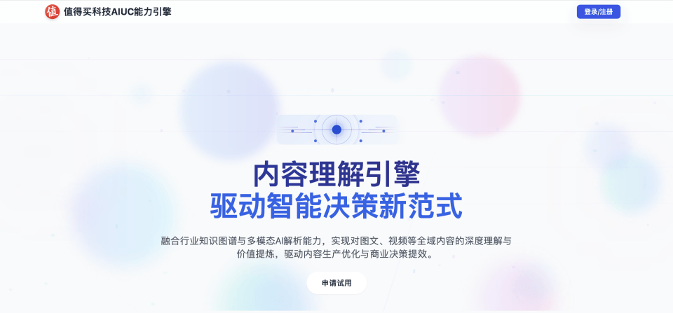 AIUC引擎(即AI Understand Content)融合行业知识图谱与多模态AI解析能力,实现对图文、视频等全域内容的深度理解与价值提炼,驱动内容生产优化与商业决策提效。目前值得买科技AIUC引擎官网业已上线,并开放17个接口,可快速体验品牌营销、内容治理、兴趣洞察、商业决策、运营提效等多个场景下的通用能力和消费服务能力。