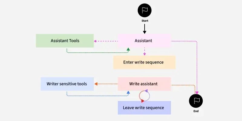 分层代理:层级代理采用分层结构组织,其中较高级别的AI代理管理和协调较低级别的AI代理。这种结构可以实现高效的任务管理和委派,较高级别的代理负责监督操作,而较低级别的代理则执行特定任务。例如:在内容管理系统中,更高级别的主管代理会监督整个流程,并将任务委派给较低级别的代理:一个代理专门负责信息检索,另一个代理专注于撰写文章,最后一个代理负责编辑。这种协调机制确保了流程的无缝衔接,并与总体策略保持一致。