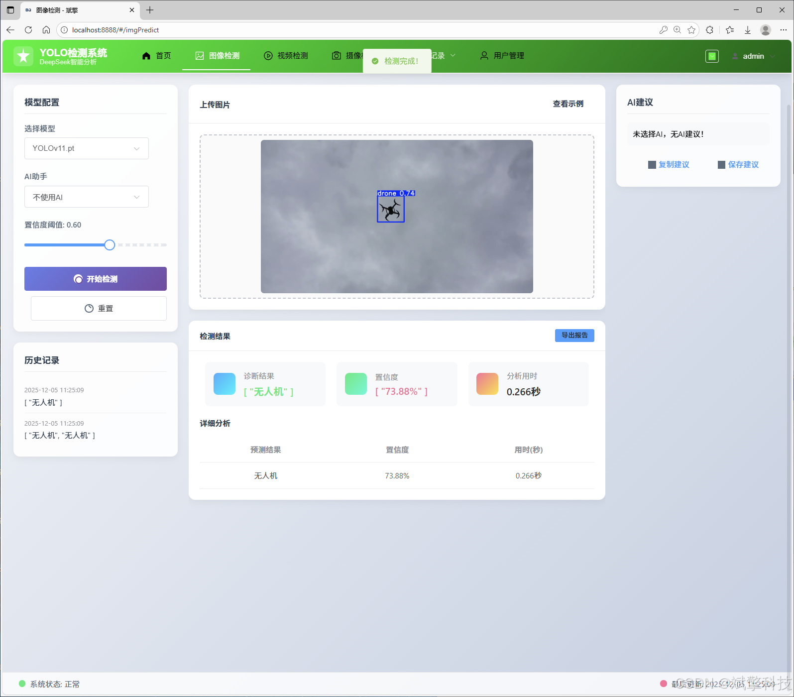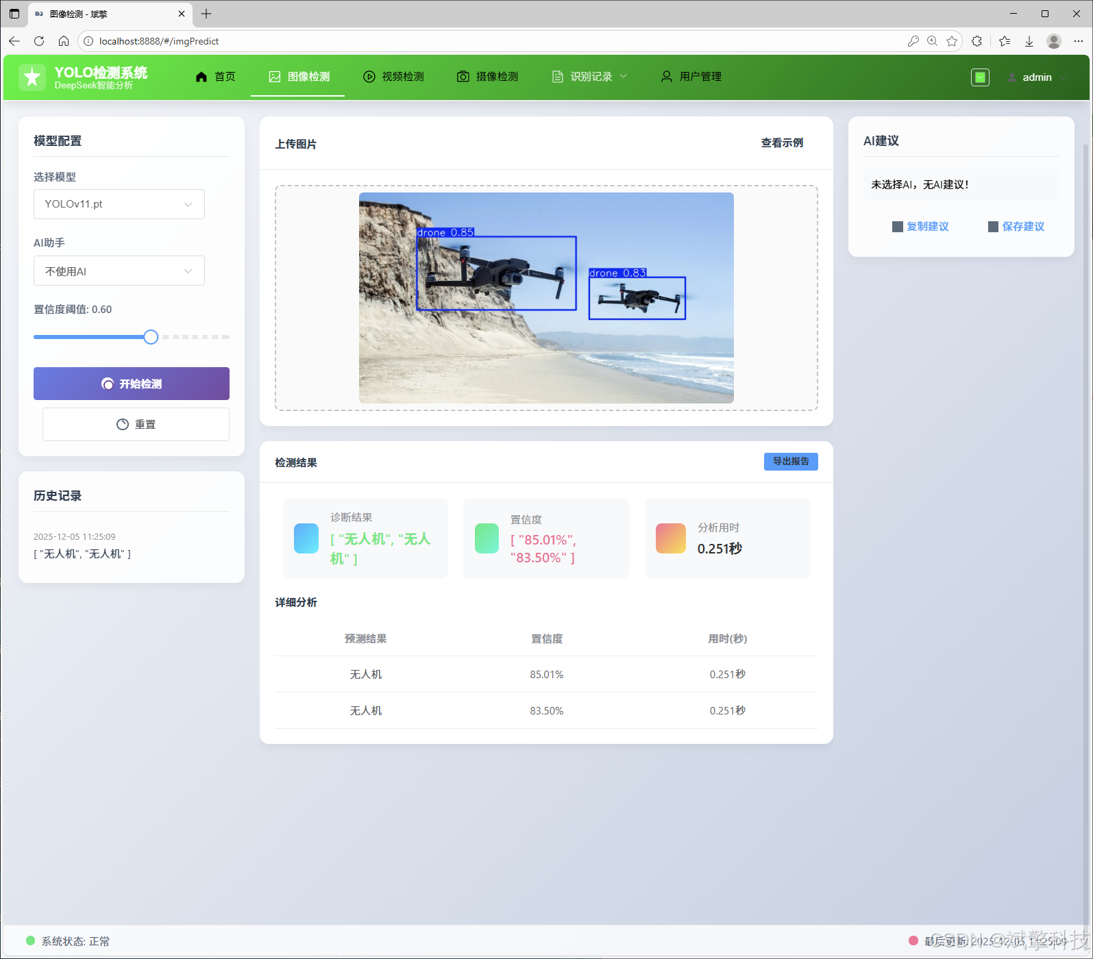 基于深度学习的无人机识别检测系统(最新web界面+YOLOv8/YOLOv10/YOLOv11/YOLOv12+DeepSeek智能分析 +前后端分离)