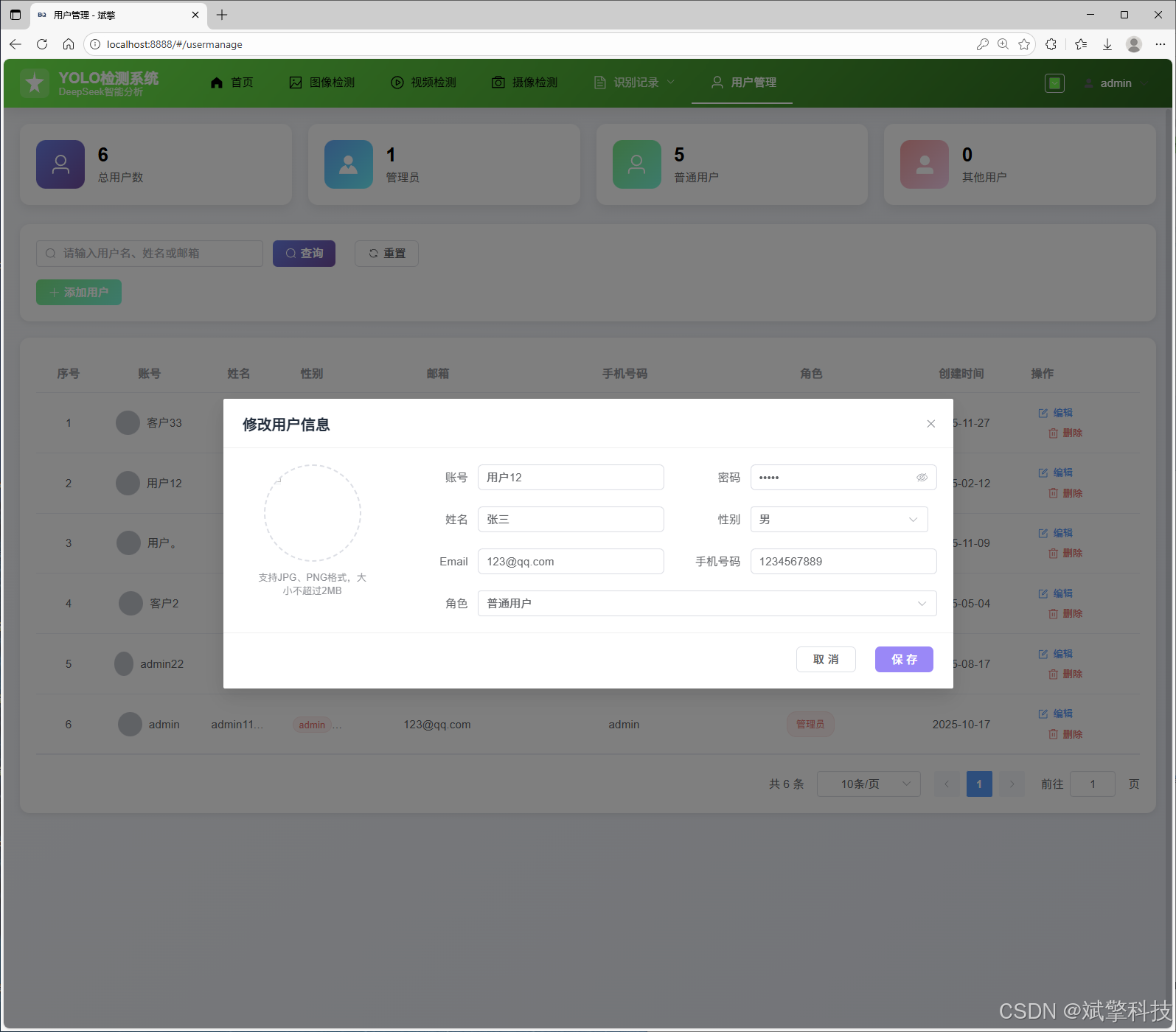 ✅ 用户管理模块,管理员可以对用户进行增删改查。