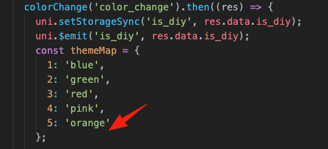 然后在template/uni-app/App.vue下方colorChange的接口返回中对主题颜色进行设置生效即可;