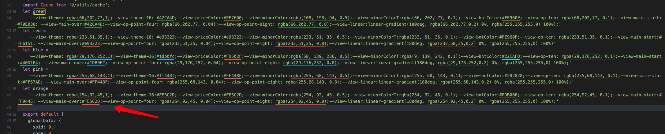 打开移动端在template/uni-app/utils/theme.js文件中,在如下位置添加自己的主题颜色的各项配置;