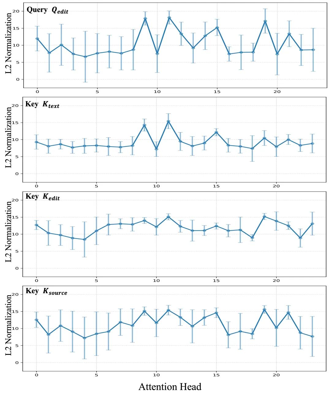 首次揭示MM-Attention偏置结构 论文系统分析了Diffusion-in-Transformer(DiT)架构下多模态注意力机制的内部特征分布,发现并理论化了每层Query/Key的“群体偏置向量”现象,为理解与调控大模型编辑行为提供了全新视角。