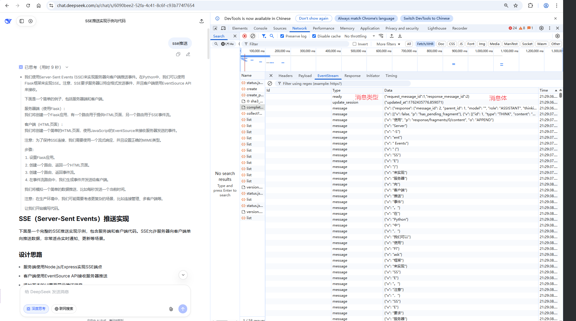 deepSeek采用sse推送样例如下