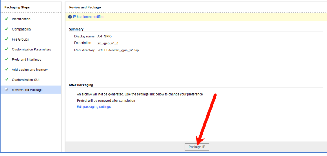 点击FINSH,打开封装IP的工程: