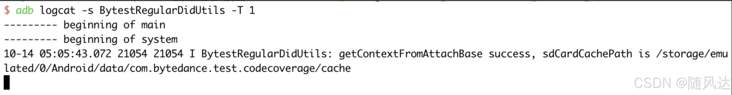 因此只需要在MainActivity的OnCreate,插入一个BytestRegularDidUtils.getContextFromAttachBase方法,这个方法会获取Context,并用context对象创建sdcard目录,并将sdcard的具体路径打印出来。最终效果如下