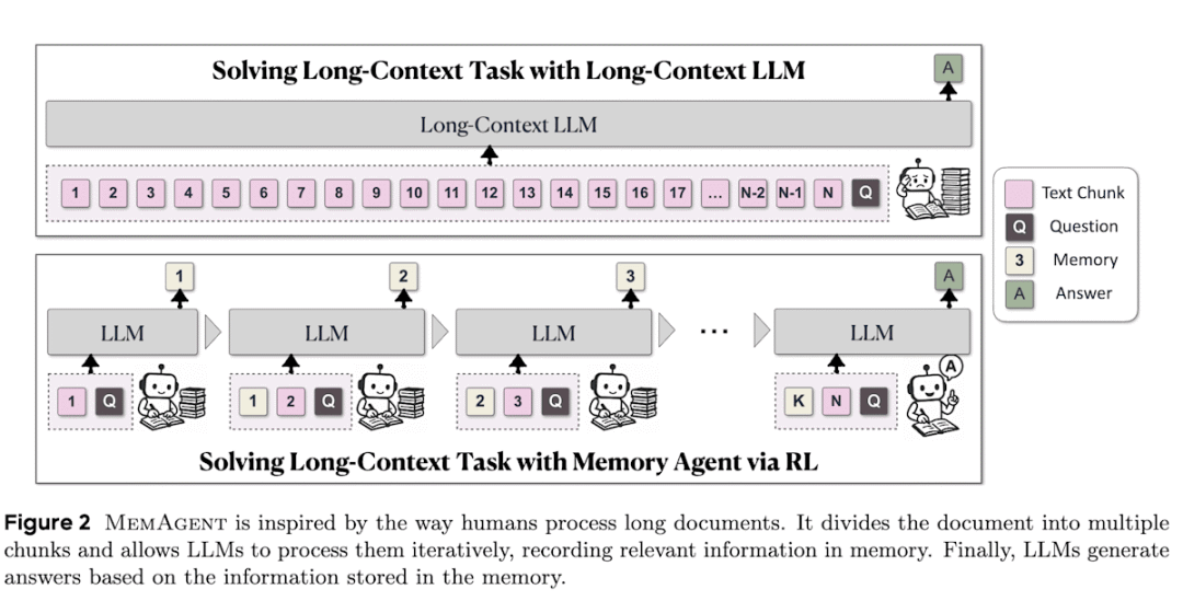 内存是指智能体保持和重用过去获得的信息和经验的能力。由于 LLM 自身的上下文窗口有限,智能体若要长期运行,就需要利用外部记忆(如知识库或对话历史)。针对这一挑战,传统方法包括使用检索增强生成 (Retrieval-Augmented Generation, RAG) 进行搜索和参考,以及通过将对话历史全部填入提示来扩展上下文窗口。然而,静态检索策略和手动设计的记忆更新可能无法针对特定任务优化信息检索和遗忘。Agentic RL 通过强化学习来学习记忆哪些信息以及回忆什么信息。