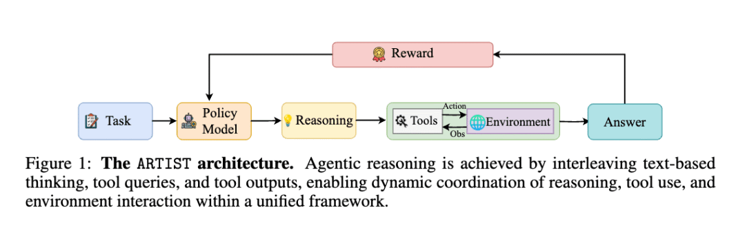 图像:ARTIST:通过强化学习实现 LLM 的智能体推理和工具集成图示