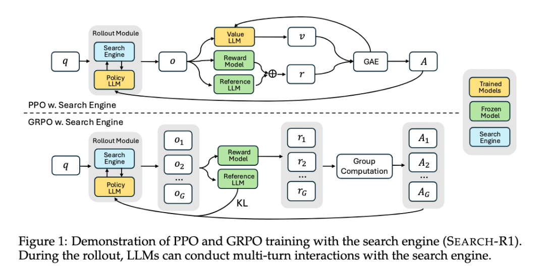 图像:search-R1:通过强化学习训练 LLM 进行推理并利用搜索引擎图示