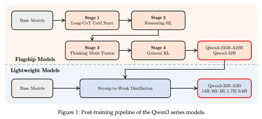 /think和/no_think。 - **第四阶段:通用强化学习 (General RL)**:针对一般任务(如指令遵循、格式遵守、智能体能力等),调整模型响应以符合用户偏好。