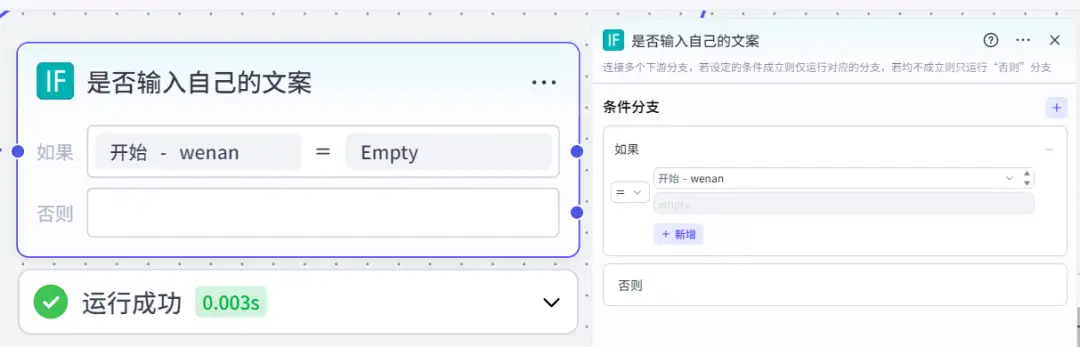 智能判断用户是否输入文案,决定走AI生成或现成文案