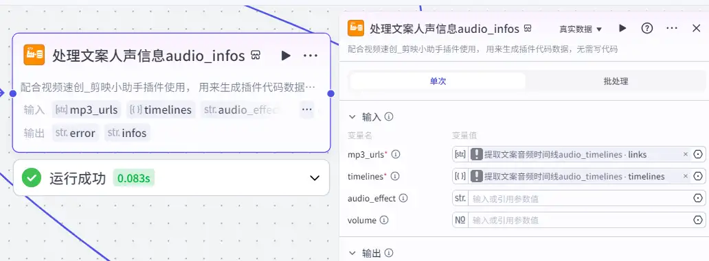 1.通过豆包深度思考模型生成共情式文案2.智能分割节点处理文本分段3.语音合成插件生成情感化配音4.剪映小助手完成视频轨道组装