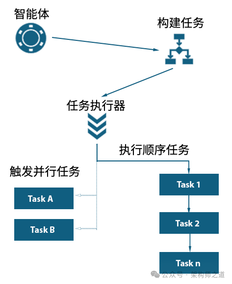 。任务编排是指将复杂的工作流程分解为可管理的、模块化的自动化任务,并定义这些任务的执行顺序和方式。在智能体系统中,任务编排确保不同的自动化任务能够协调一致地执行,以完成特定的工作流程