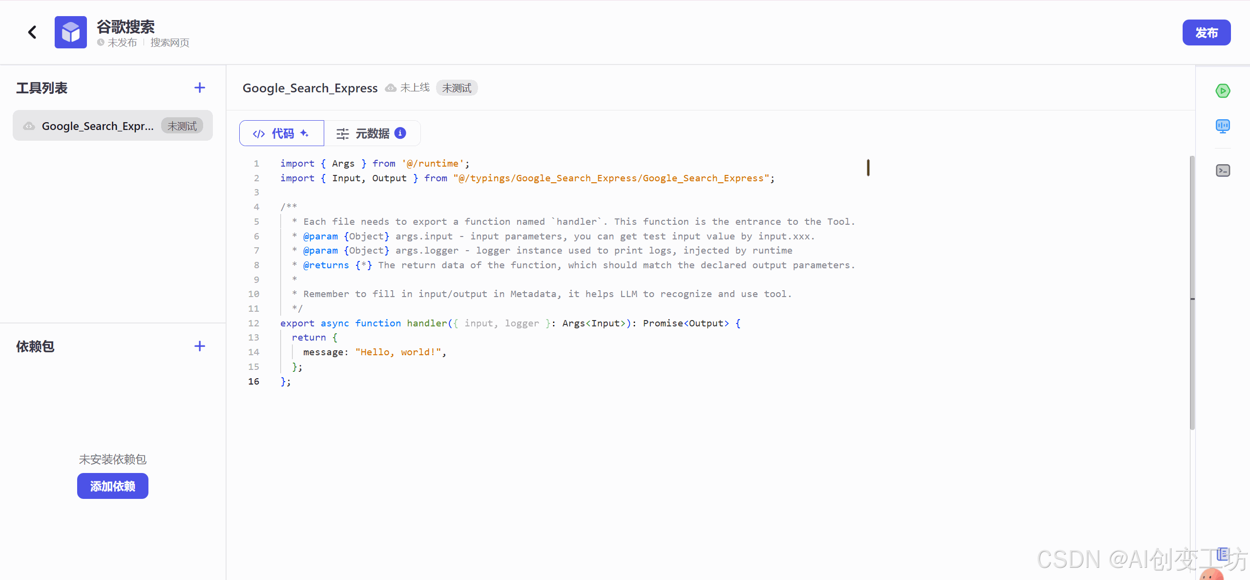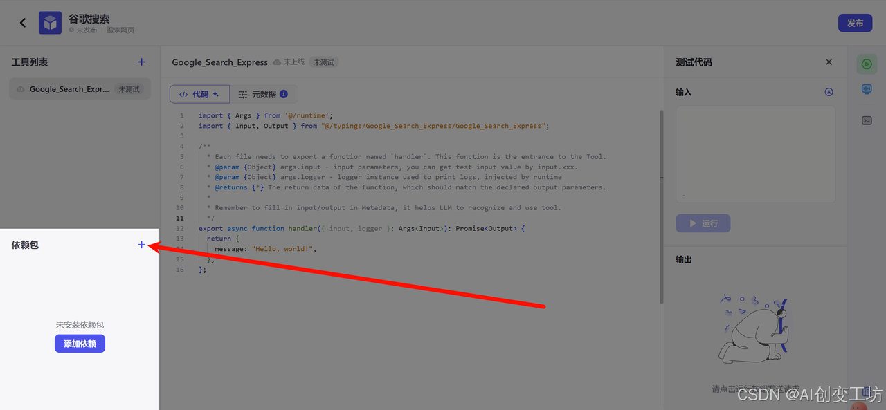 让我们创建一个工具,点击“在IDE中创建工具”