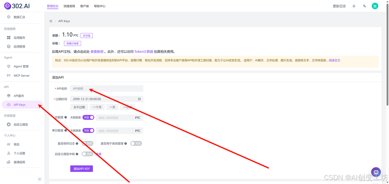 - description: 302.AI管理后台-API超市-API管理,复制生成的API Key