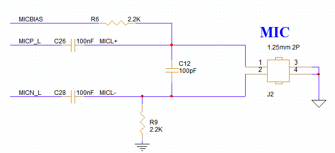 麦克风支持差分或者单端接法;本设计如上图,采用差分的方式,能有效避免干扰。