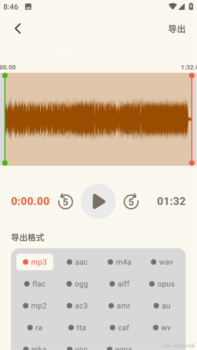 此外,软件还提供手机铃声制作功能,用户可以自由裁剪音频片段,定制独一无二的专属铃声。无论是音乐爱好者、自媒体创作者,还是日常办公需求,AudioEdit v1.0.5 都能满足你的音频处理需求,让音频编辑变得轻松又高效!其专业级的视频音频提取功能,完美适配多种视频格式,一键即可将视频中的精彩音频剥离并保存。无论是 MP3 格式转换、视频音频提取,还是手机铃声定制、音频剪辑,它都能一站式搞定。专业音