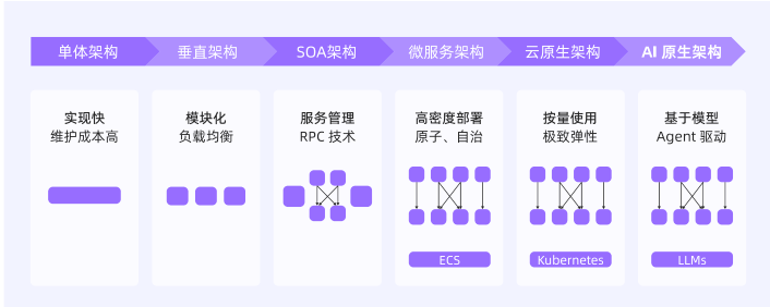 白皮书中首先介绍了IT应用架构从“业务痛点-> 技术突破-> 架构升级”的演进脉络,阐述了架构每一步都源于业务对稳定性、可维护性和协作效率的提升追求: