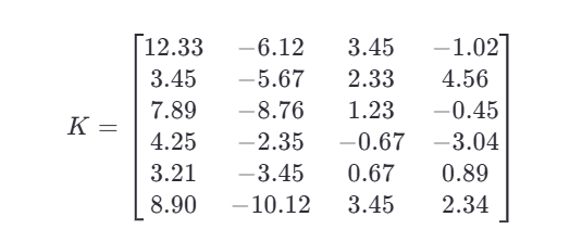 我们将这 6 个向量 按行排列,形成一个 6×4 的矩阵 K: