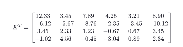 然后进行 转置,得到 K^T(形状:4×6):