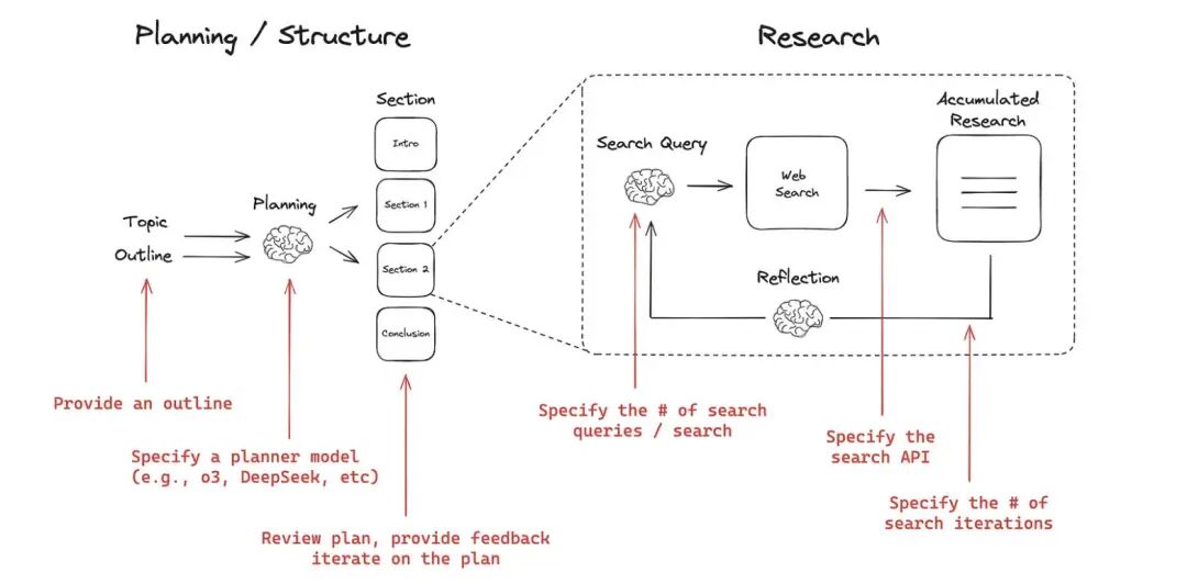 ReAct框架 (Reasoning + Acting):ReAct范式的核心是让LLM交错地生成“思考”(推理轨迹)和“行动”(工具调用), 从而形成一个显式的思考-行动-观察循环 。