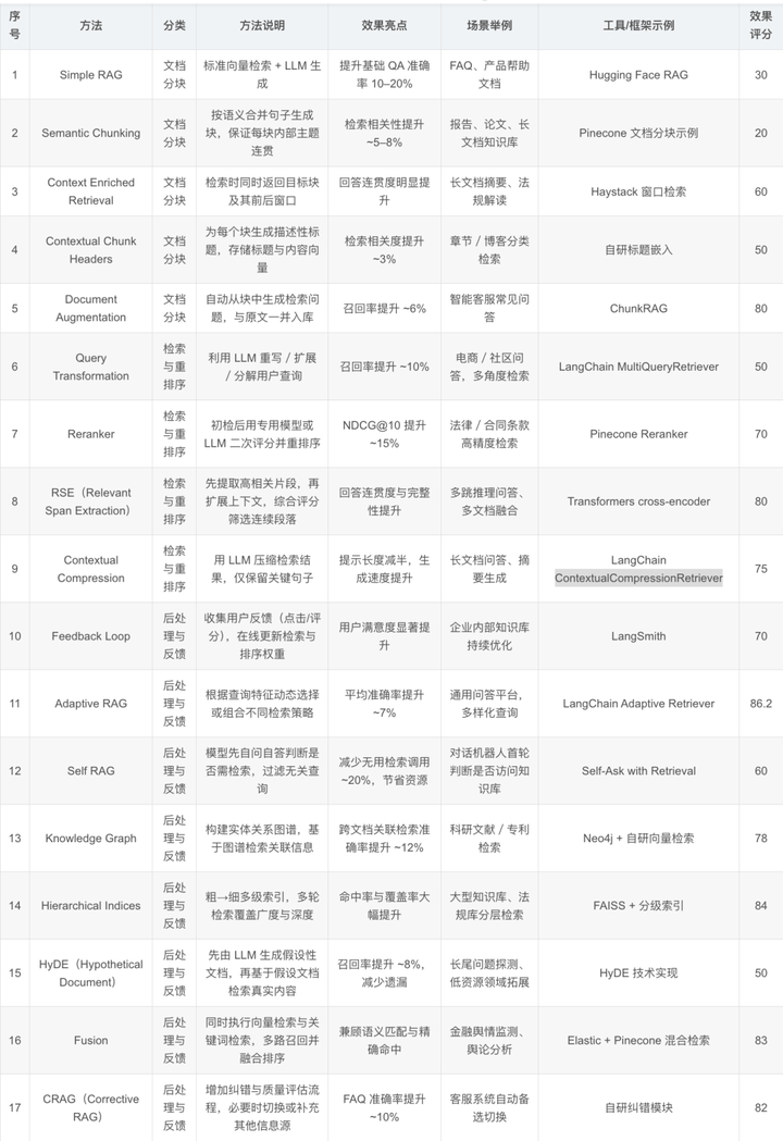 最后我们再总结一下这17种RAG 实现方法的技术原理: