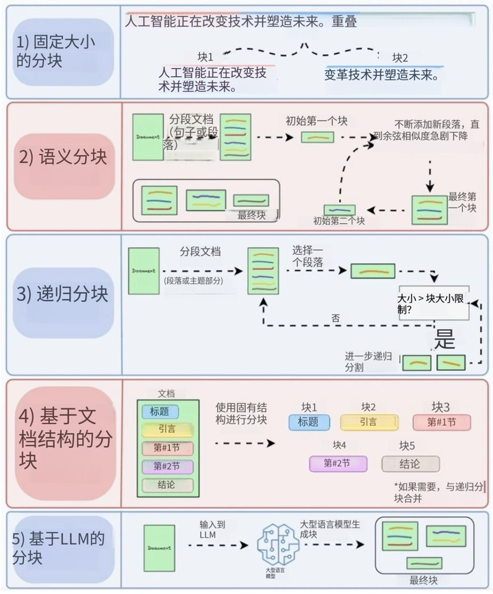 文档分块质量直接影响检索效率,5种方法解决不同场景: