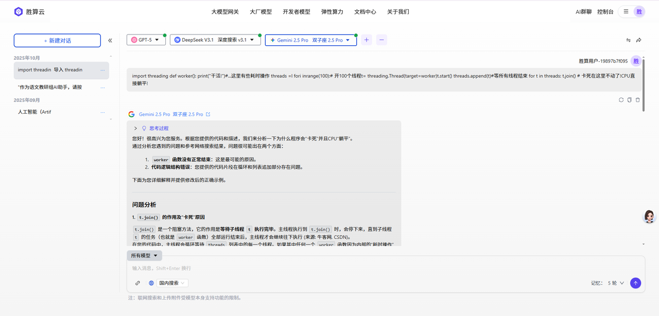 给你推荐一个好用的工具:胜算云 AI 群聊!可以不用切换同时看到 GPT、Claude 、Gemini等多模型的差异。
