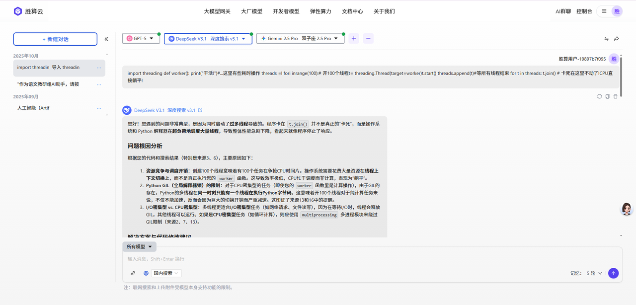 胜算云 AI 群聊多模型同台对话,一次对比全搞定